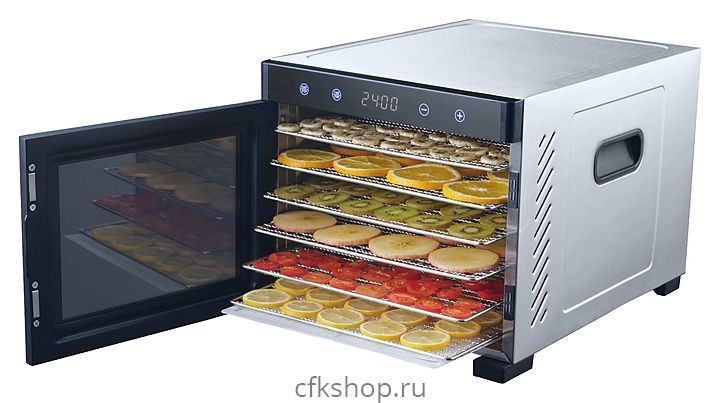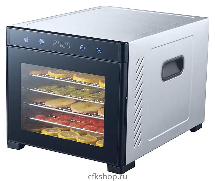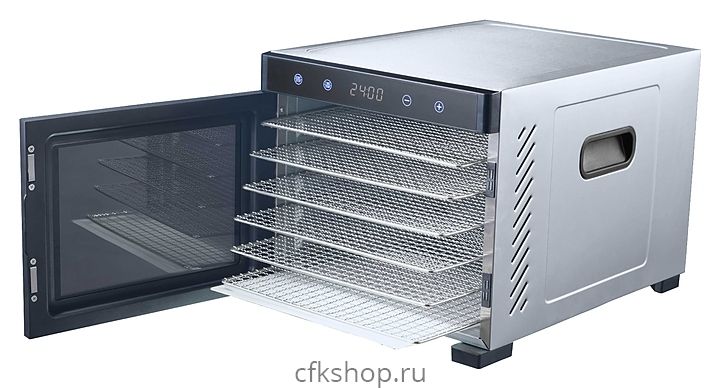 Дегидратор VIATTO VA-DG6SS предназначен для равномерного извлечения влаги из продуктов (овощей, грибов, фруктов, ягод, трав и орехов) посредством конвекции, а также для приготовления пастилы, в т.ч. фруктовой (смоквы), овощных и фруктовых чипсов, хлебцев, сушеного мяса и рыбы на предприятиях общественного питания. Модел оснащена электронной панелью управления и вентилятором с горизонтальным распределением воздуха, обеспечивающим равномерное просушивание продукта на всех уровнях загрузки.