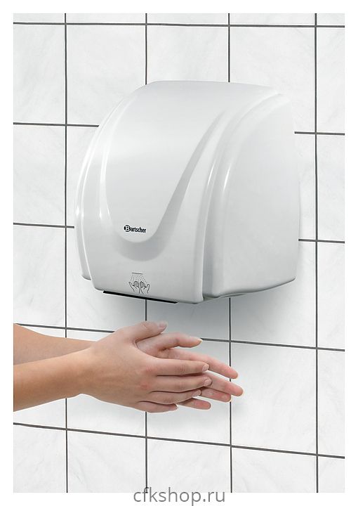 Сушилка для рук Bartscher 850000 используется в туалетных комнатах кафе, баров, ресторанов, торговых центров, офисов и других местах общего пользования и предназначена для быстрой сушки рук. Корпус выполнен из пластика белого цвета.