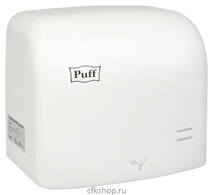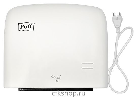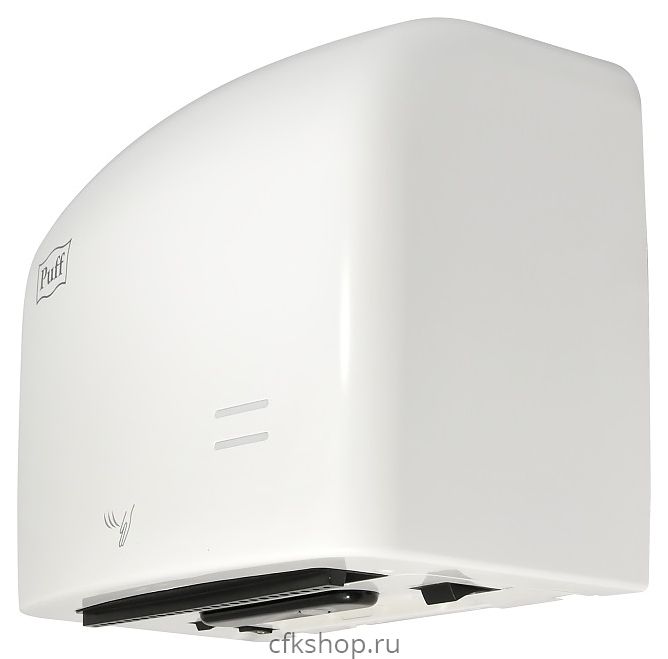Сушилка для рук Puff 8807 используется в туалетных комнатах торговых центров, гостиниц, аэропортов, предприятий общеcтвенного питания и других местах массового пребывания для бесконтактной гигиеничной сушки. Модель оснащена нагревательным элементом, электродвигателем с вентилятором, 3 колыбельными переключателями на нижней панели и кабелем питания с вилкой. Корпус выполнен из ударопрочного АБС-пластика белого цвета.