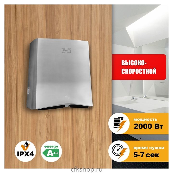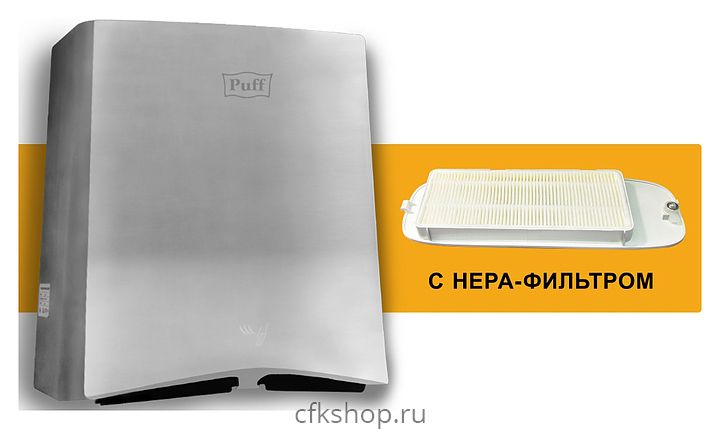 Сушилка для рук Puff 8835 используется в гостиницах, отелях, бассейнах, фитнес-клубах и спа-центрах. Прибор оснащен сенсорным управлением, 2 скоростями высушивания и кнопкой отключения горячего воздуха. Инновационный стекловолокнистый HEPA фильтр защищает от мельчайших частиц пыли, мембранный фильтр - от попадания инородных частиц в мотор. Корпус выполнен из прочной нержавеющей стали 304, что гарантирует антивандальность.