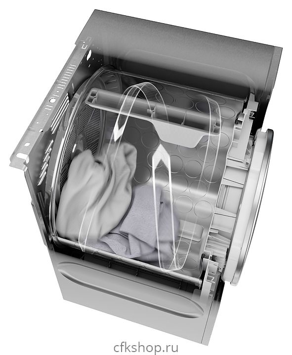 - При вращении барабана белье направляется по траектории в виде "восьмерки"