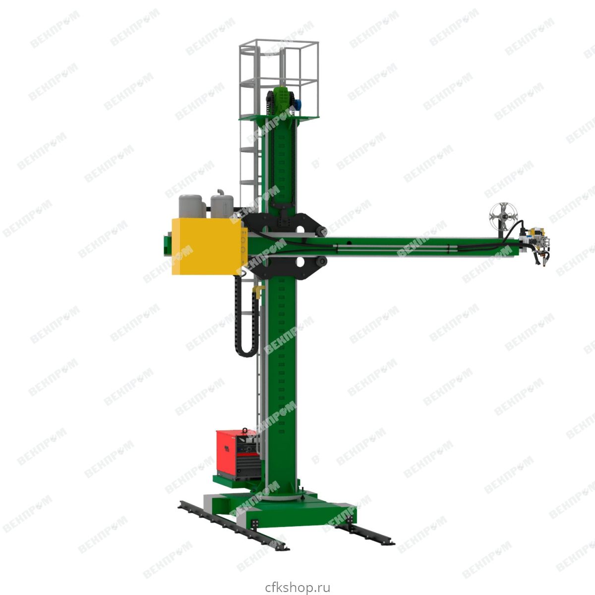 Осуществляется совместная работа колонны со сварочными опорными вращателями и манипуляторами при сварке внутренних и внешних продольных швов, сварке кольцевых швов цилиндрических деталей, при этом управление всем механическим комплексом производиться с рабочего места сварщика с единого пульта управления.