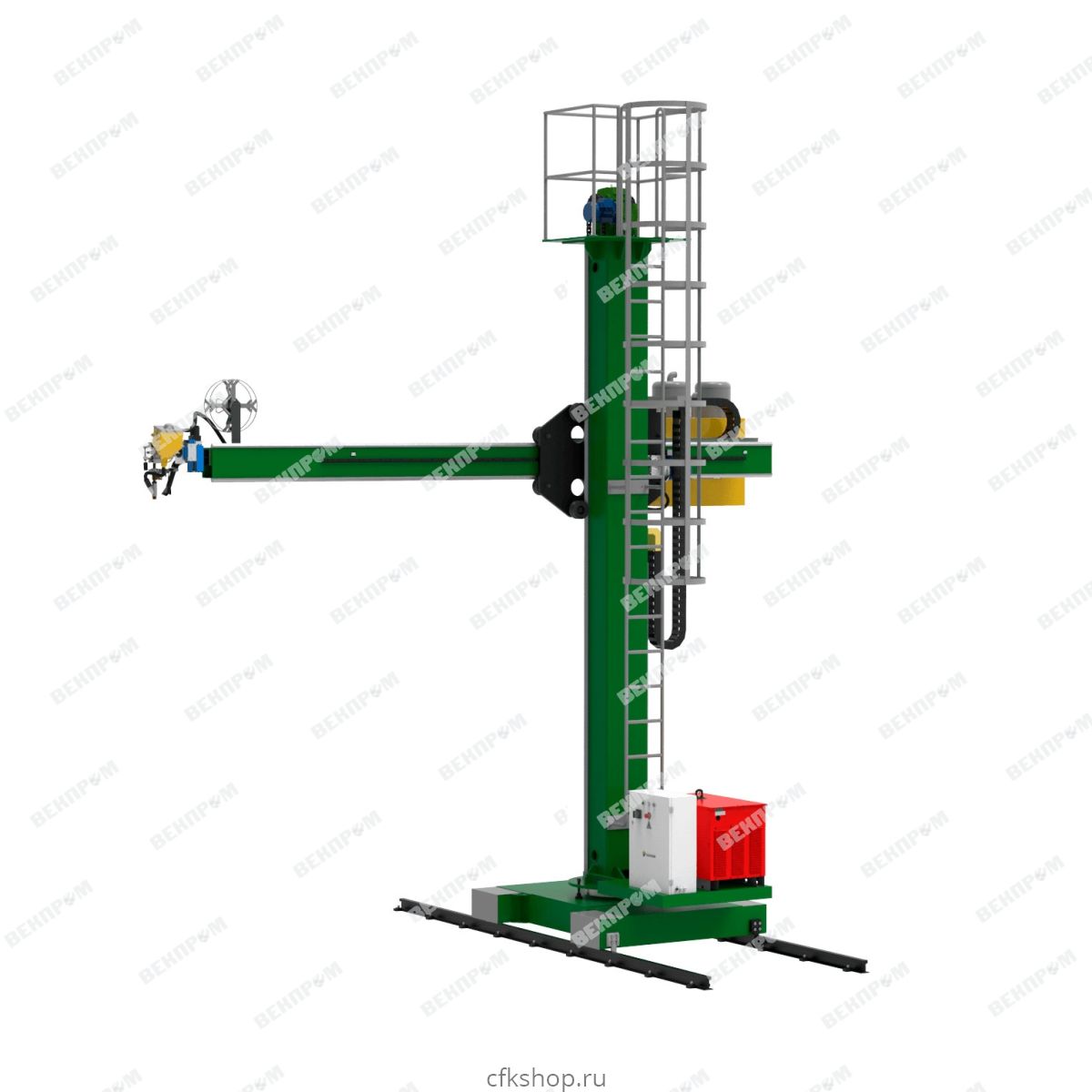 Все кабеля скрыты и защищены вертикальным и горизонтальным гибким кабелеукладчиком. На колонне установлена лестница для оператора для обслуживания сварочной колонны