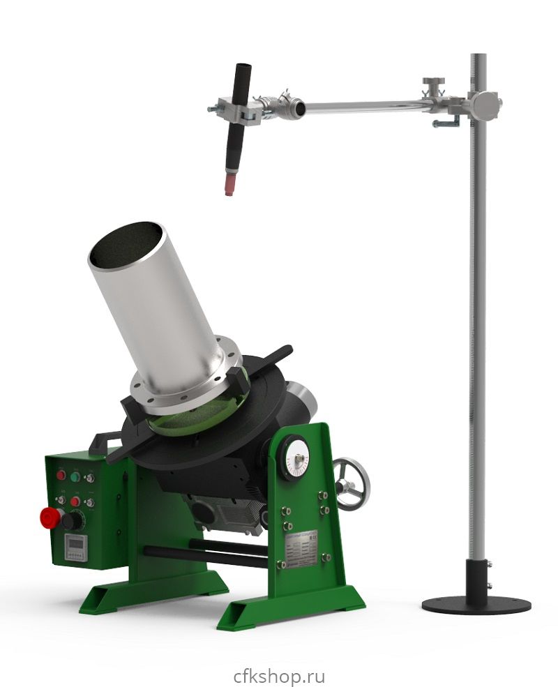 Сварочный позиционер HD-100 предназначен для сварки кольцевых швов деталей весом до 100 кг. Скорость вращения планшайбы регулируется от 1 до 5 об./мин.Позиционер HD-100 представляет собой поворотный стол с углом наклона планшайбы от 0° до 90°, на котором размещаются и с заданной точностью выставляются элементы свариваемых конструкций. В планшайбе есть сквозное отверстие 45мм.