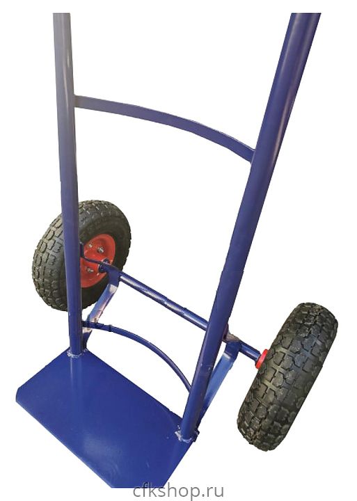 Тележка Мастер-инструмент HT1701 предназначена для транспортировки газового баллона и других крупногабаритных предметов на складах, строительных и сельскохозяйственных объектах, предприятиях общественного питания, торговли и других отраслей. Модель оснащена сплошной платформой, дугообразной ведущей рукояткой, цепью для фиксации груза и 2 осевыми пневматическими колесами с не симметричной ступицей. Вертикально ориентированная сварная рама выполнена из профиля металлической трубы круглого сечения с антикоррозийным покрытием краской синего цвета, цепь – из оцинкованной стали.