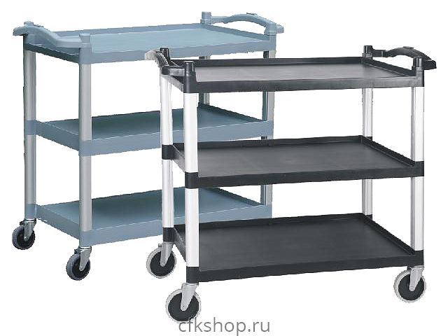 Тележка для обслуживания NORMA F4771 предназначена для транспортировки посуды, инвентаря, продуктов, пищевых отходов и предметов сервировки на предприятиях общественного питания, в медицинских учреждениях, санаториях и отелях. Модель оснащена удобными ручками, 3 полками с бортиками и 4 стальными колесами с особым покрытием, обеспечивающим бесшумную перевозку и устойчивость тележки при маневрировании. Стойки модели изготовлены из алюминия, полки - из прочного полипропилена.