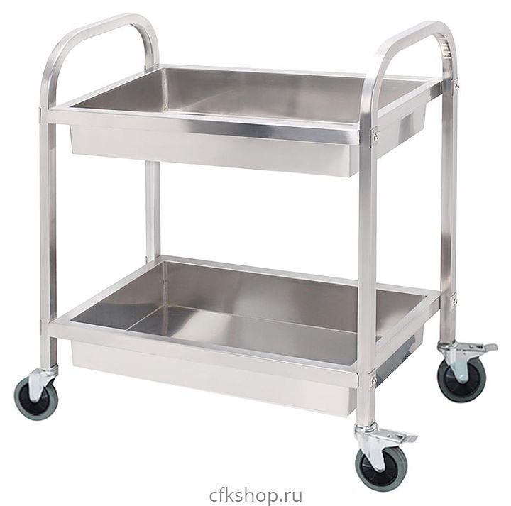 Тележка Hurakan HKN-TCD2 используется на предприятиях общественного питания и торговли для сбора и перевозки грязной посуды. Модель оснащена 2 полками и 4 поворотными колесами, 2 из которых оборудованы тормозами. Изделие выполнено из нержавеющей стали.