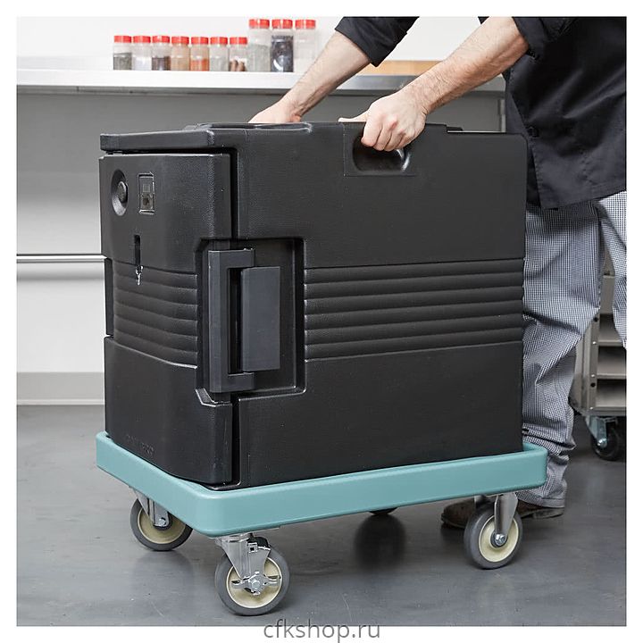 Тележка Cambro CD400 401 серии Camdolly предназначена для транспортировки термоконтейнеров на предприятиях общественного питания и торговли. Изделие значительно облегчает и ускоряет процесс перемещения оборудования. Корпус выполнен из высокопрочного пластика. Подходит для термоконтейнеров UPCS400 и UPC400.