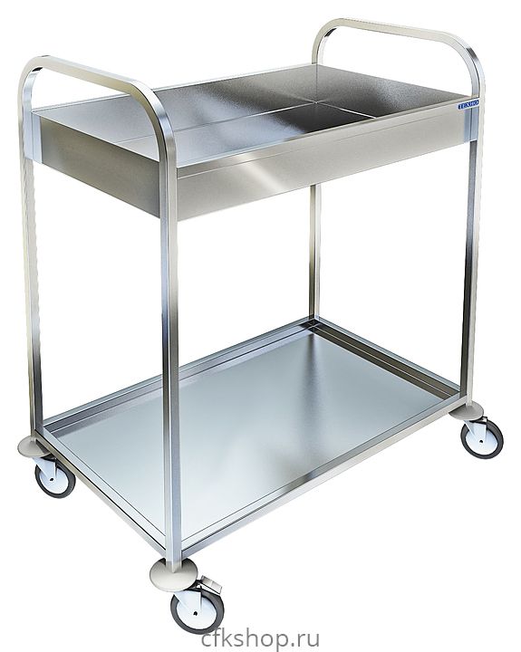 Комбинированная тележка Техно-ТТ ТП-221 предназначена для доставки готовых блюд, сбора тарелок, чашек и стаканов со столов на предприятиях общественного питания и торговли. Модель оснащена 2 полками и 4 колесами, 2 из которых с тормозными устройствами. Разборный каркас выполнен из квадратной трубы из нержавеющей стали AISI 304, полки - из нержавеющей стали AISI 304.