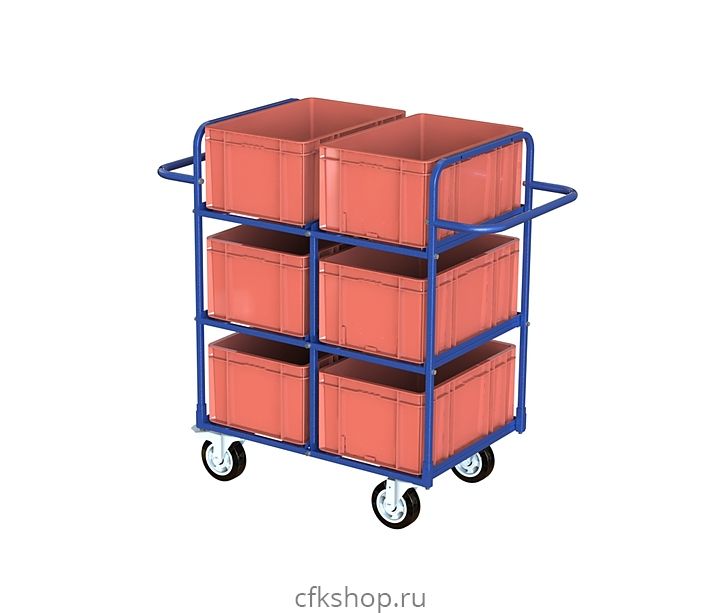 Производственная тележка Нова-склад IS10 предназначена для перемещения грузов, пластиковых ящиков, стандартных евробоксов или картонных коробок внутри складских, торговых и производственных помещений. Опорные поверхности выполнены из листового металла толщиной 1,5 мм.