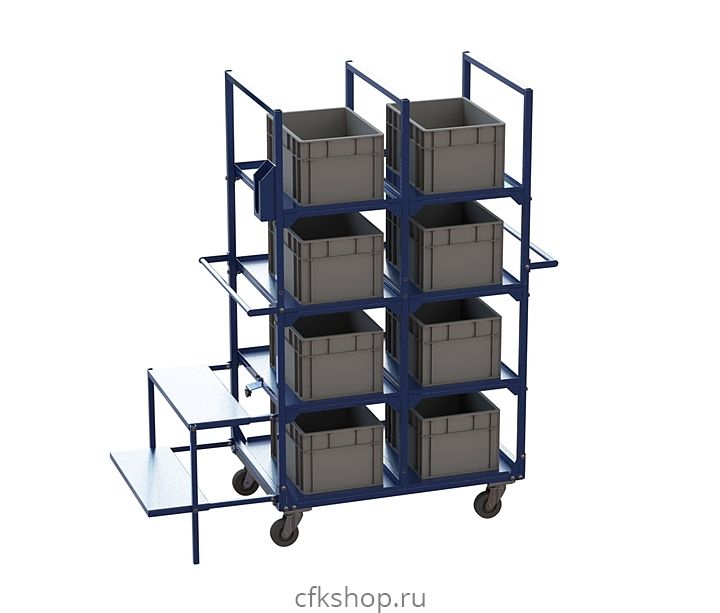 Производственная тележка Нова-склад VK13 предназначена для хранения и транспортировки товаров на складах и рабочих станциях, предприятиях пищевой промышленности, в торговых и производственных помещениях. Модель оснащена 8 ячейками и встроенной стремянкой.