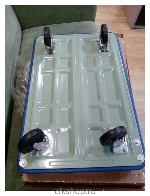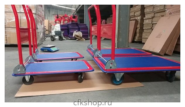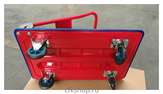 Производственная тележка Мастер-инструмент ТП 150 предназначена для транспортировки крупногабаритных и тяжелых грузов на складах, погрузочно-разгрузочных терминалах, строительных и сельскохозяйственных объектах, предприятиях общественного питания, торговли и других отраслей. Модель оснащена сплошной прямоугольной платформой, складной дугообразной ведущей рукояткой, 4 колесами, включая 2 поворотных. Рукоятка выполнена из профиля металлической трубы круглого сечения с антикоррозийным покрытием краской красного цвета, платформа – из металла с нескользящим синим ковриком на рабочей поверхности, колеса – из пластика с резиновыми шинами на металлических креплениях.