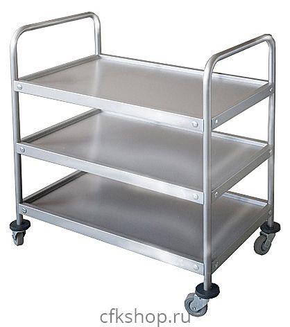 Сервировочная тележка ITERMA ТС-3/3 используется на предприятиях общественного питания и торговли для сервировки обеденных залов, а также для сбора и перевозки грязной посуды. Модель оснащена 3 полками и 4 поворотными колесами, 2 из которых оборудованы тормозами. Выполнена из нержавеющей стали AISI 304.