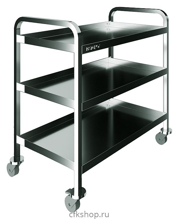 Сервировочная тележка Restoinox ТС-3-8/5 предназначена для транспортировки готовых блюд и посуды на предприятиях общественного питания. Модель оснащена 3 полками и 4 поворотными колесами, 2 из которых со стопорами. Каркас выполнен из трубы 25х25 мм нержавеющей стали AISI 430, полки - из нержавеющей стали AISI 430 мм.