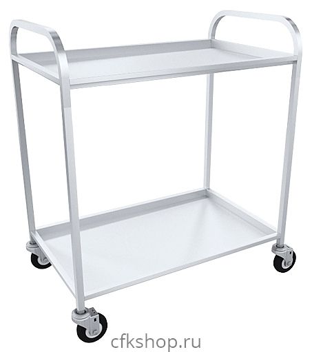 Сервировочная тележка Пищевые Технологии ТОН-2-01 предназначена для транспортировки готовых блюд, лекарств, приборов и тарелок на предприятиях пищевой промышленности, общественного питания и торговли, в гостинницах, отелях и больницах. Модель оснащена 2 полками и 4 поворотными колесами со стопором на одном из них. Каркас выполнен из 2-х труб квадратного сечения 20х20 мм из нержавеющей стали, полки - из нержавеющей стали.