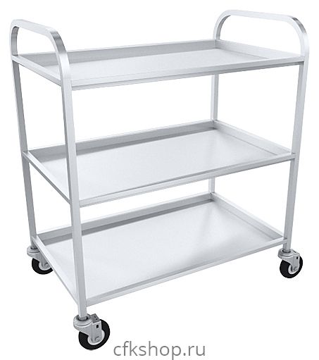 Сервировочная тележка Пищевые Технологии ТОН-3-01 предназначена для демонстрации и транспортировки сервированных блюд, напитков и посуды на предприятиях общественного питания и торговли. Модель оснащена 3 полками и 4 поворотными колесами, одно из которых снабжено стопором. Каркас выполнен из 2-х труб квадратного сечения 20х20 мм из нержавеющей стали, полки - из нержавеющей стали.