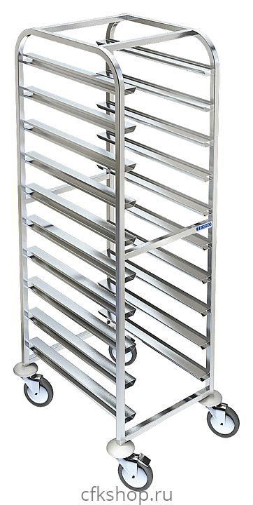 Тележка-шпилька Техно-ТТ СТС-220/806У предназначена для транспортировки и хранения противней и гастроемкостей на предприятиях общественного питания и торговли. Модель оснащена 4 поворотными колесами, 2 из которых с тормозными устройствами и отбойниками. Каркас выполнен из квадратной трубы 20х20 мм из нержавеющей стали AISI 304, полозки - из нержавеющей стали AISI 304, отбойники - из пластика, колеса покрыты резиной.