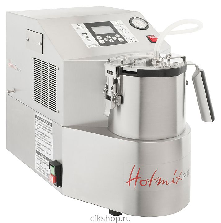 Термомиксер HotmixPRO Master XL используется на предприятиях общественного питания и торговли для измельчения, взбивания, смешивания, поджаривания и пастеризации продуктов при высоких температурах и под вакуумом. Модель оснащена конической чашей. Корпус, ножи и подшипники изготовлены из нержавеющей стали.