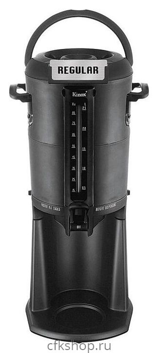 Термос-диспенсер P.L. Proff Cuisine "Kinox" 4101A используется на небольших предприятиях общественного питания и торговли, в офисах, гостиницах, а также домашних условиях для транспортировки и дозированного розлива кофе, чая и других напитков при длительном сохранении их первоначальной температуры. Модель оснащена краном для розлива, съемным основанием с подставкой для тары, индикатором уровня с мерной шкалой в литрах и унциях, складными рукоятками: 2 на боковых стенках и 1 сверху. Корпус выполнен из черного пластика.