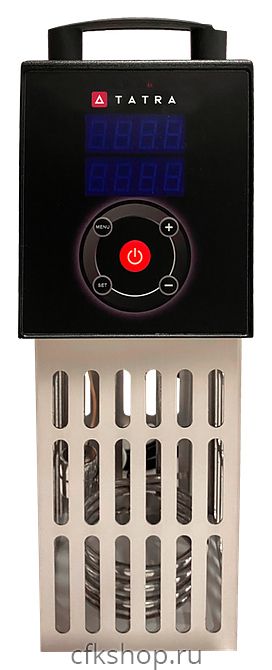 Погружной термостат Tatra TSV2 предназначен для приготовления широкого спектра блюд по технологии Sous Vide на предприятиях общественного питания и торговли. Модель оснащена электронной панелью управления с дисплеем с индикацией рабочей температуры и времени, таймером на 72 часа, зажимом для закрепления на емкости, ручкой для переноски и циркуляционной помпой, обеспечивающей заданную температуру по всему рабочему объему. Корпус и защитный кожух выполнены из нержавеющей стали.