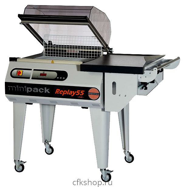 Термоусадочная машина Minipack-Torre Replay 55 EVO используется на промышленных и торговых предприятиях для упаковки компакт-дисков, канцелярских и прочих товаров для офиса, продуктов питания полиолефиновой (ПОФ) или поливинилхлоридной (ПВХ) пленкой. Модель оснащена удобной панелью управления и прозрачной крышкой камеры для контроля процесса упаковки.