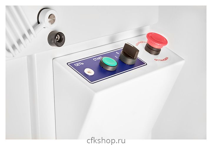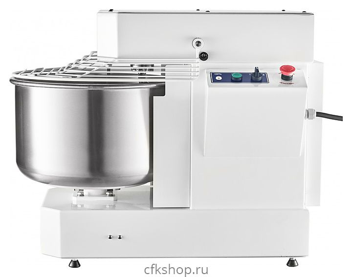 Корпус выполнен из высококачественной конструкционной стали с полимерным покрытием, металлические детали машины, контактирующие с продуктом во время замеса (спираль, дежа, нож) - из нержавеющей стали AISI 304.