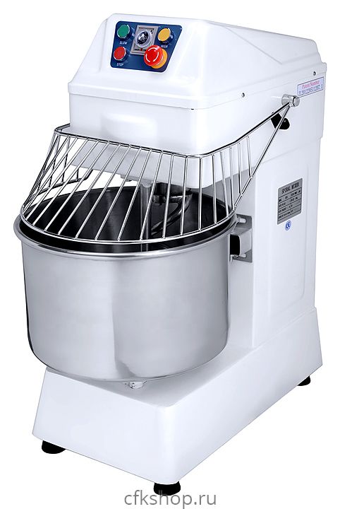 Спиральный тестомес Hualian HS50 предназначен для замешивания дрожжевого теста с различной основой и консистенцией для выпечки хлебобулочных или кондитерских изделий на предприятиях пищевой промышленности, общественного питания и торговли. Модель оснащена электронным таймером, кнопкой аварийной остановки, защитной решеткой и отсекателем. Дежа выполнена из нержавеющей стали.