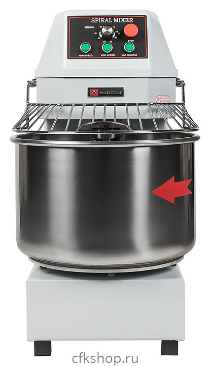 - Месильный орган, состоящий из вращающейся спирали и неподвижного отсекателя, способствует быстрому и качественному замесу