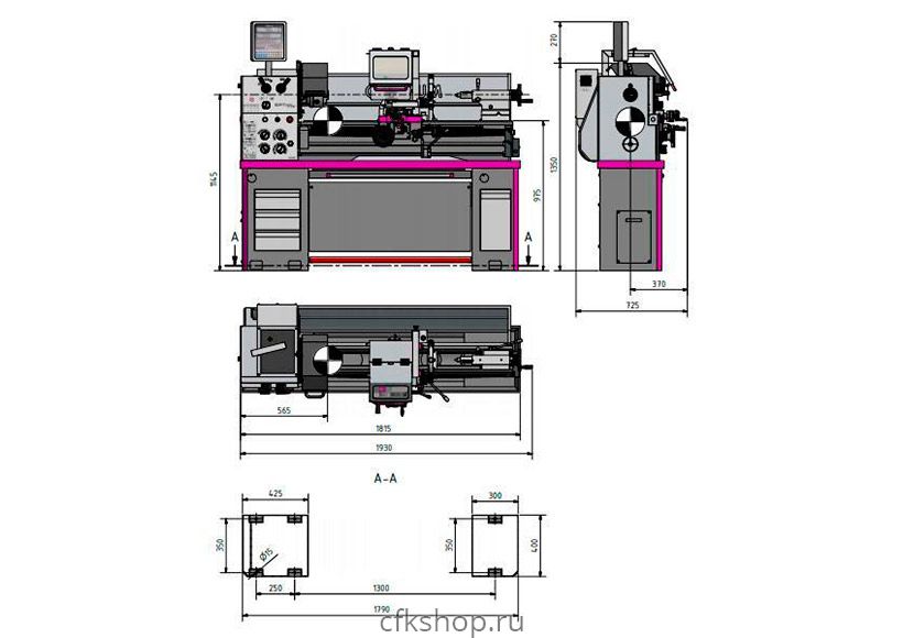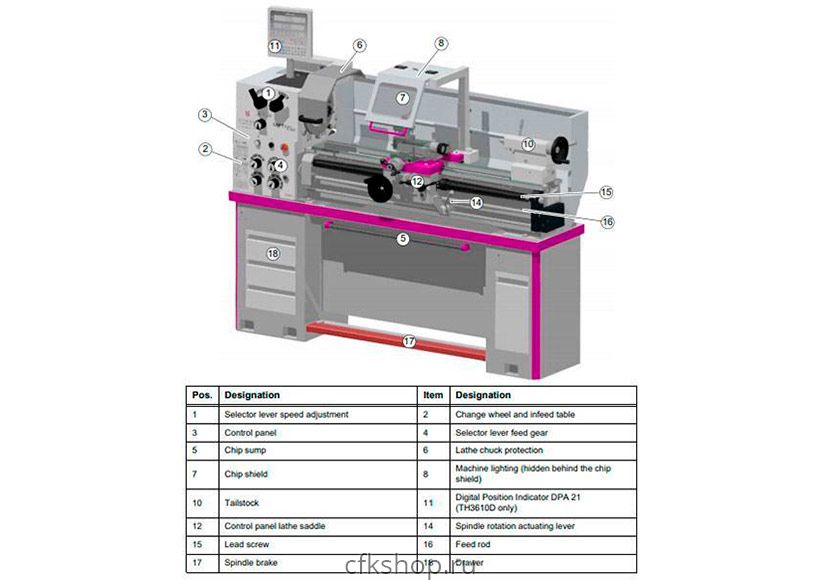 Полностью укомплектованный токарный станок для слесарных работ. TH 3610D с цифровым указателем положения DPA 21.