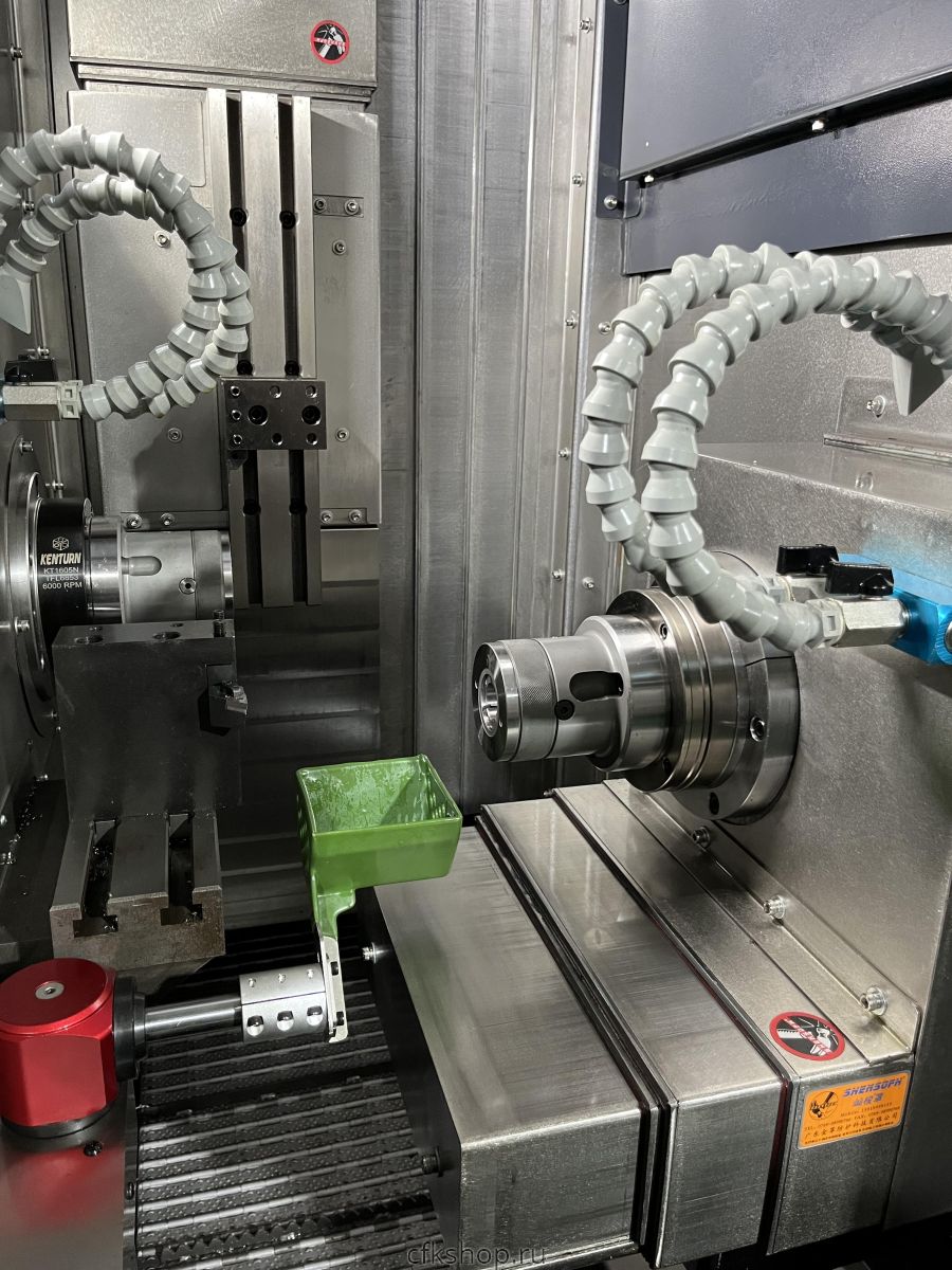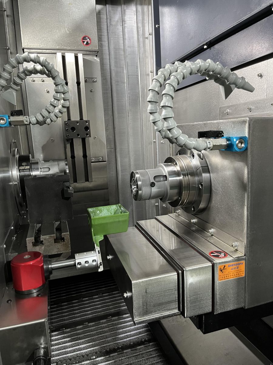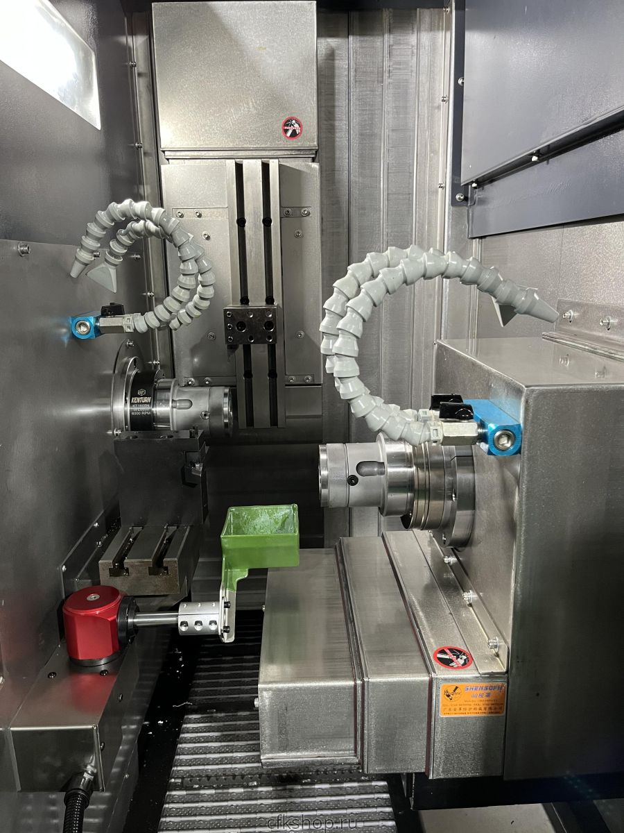 - Противошпиндель оснащен серво-синхронным электрическим шпинделем, который обладает высокой скоростью, точностью и низким уровнем шума.