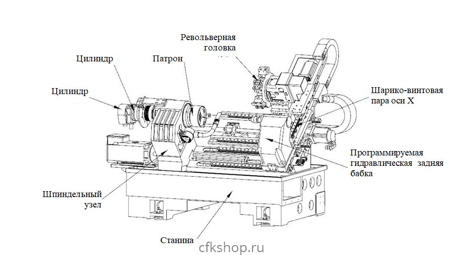 - Конструкция станины. Станина, отлитая из чугуна, под наклоном 45° - обеспечивает высокую жесткость и виброустойчивость, легкое удаление стружки и компактность всего станка.