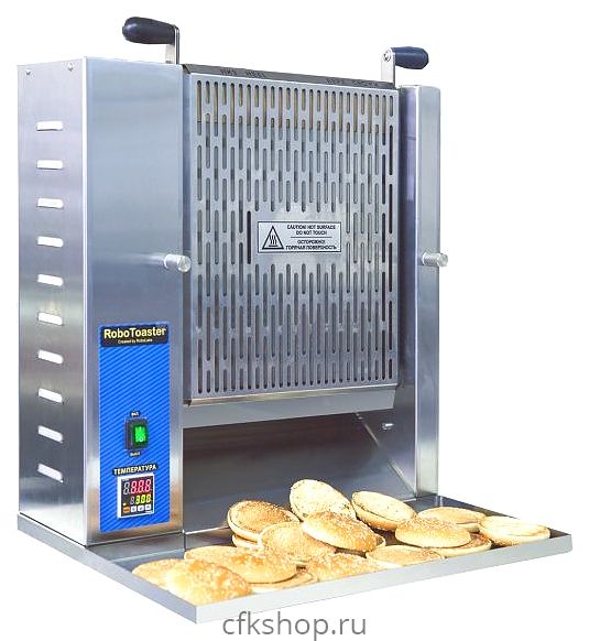 Конвейерный тостер ТТМ RoboToaster предназначен для подогрева и поджарки предварительно разрезанных булочек на предприятиях общественного питания и торговли. Модель оснащена электромеханическим управлением. Конструкция выполнена из нержавеющей стали AISI 430, нагревательная поверхность - из алюминия, контактная часть (коврик) - тефлон, сетчатая конвейерная лента - из нержавеющего прутка толщиной 4 мм.