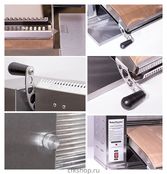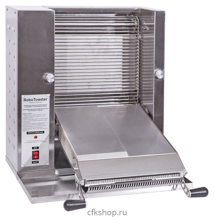 Конвейерный тостер RoboLabs RoboToaster M предназначен для подогрева и карамелизации предварительно разрезанных булочек на предприятиях общественного питания и торговли. Модель оснащена электромеханическим управлением. Конструкция выполнена из нержавеющей стали AISI 430, нагревательная поверхность - из алюминия, контактная часть (коврик) - тефлон, сетчатая конвейерная лента - из нержавеющего прутка диаметром 4 мм.