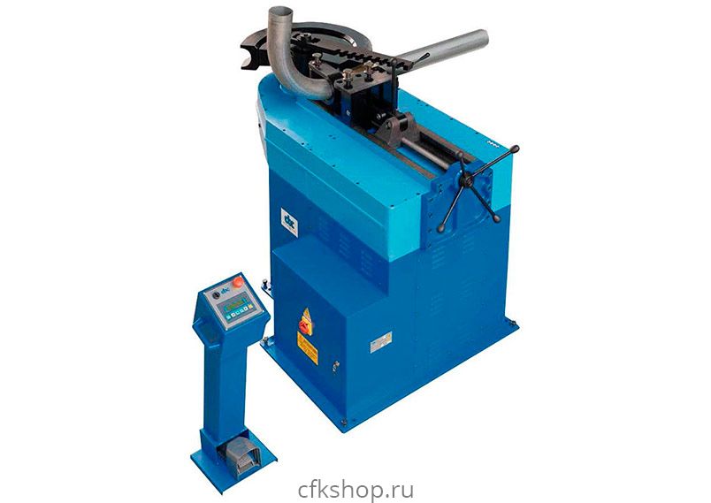 Цифровой электромеханический трубогибочный станок для гибки труб диаметром до 120 мм с возможностью регулировки угла гибки от 0˚ до 180˚. Производит гибку в 3D-пространстве. Высокая скорость позволяет использовать станок в многосерийном производстве. При работе матрица с закрепленной трубой вращается по часовой стрелке на определенный программируемый угол.