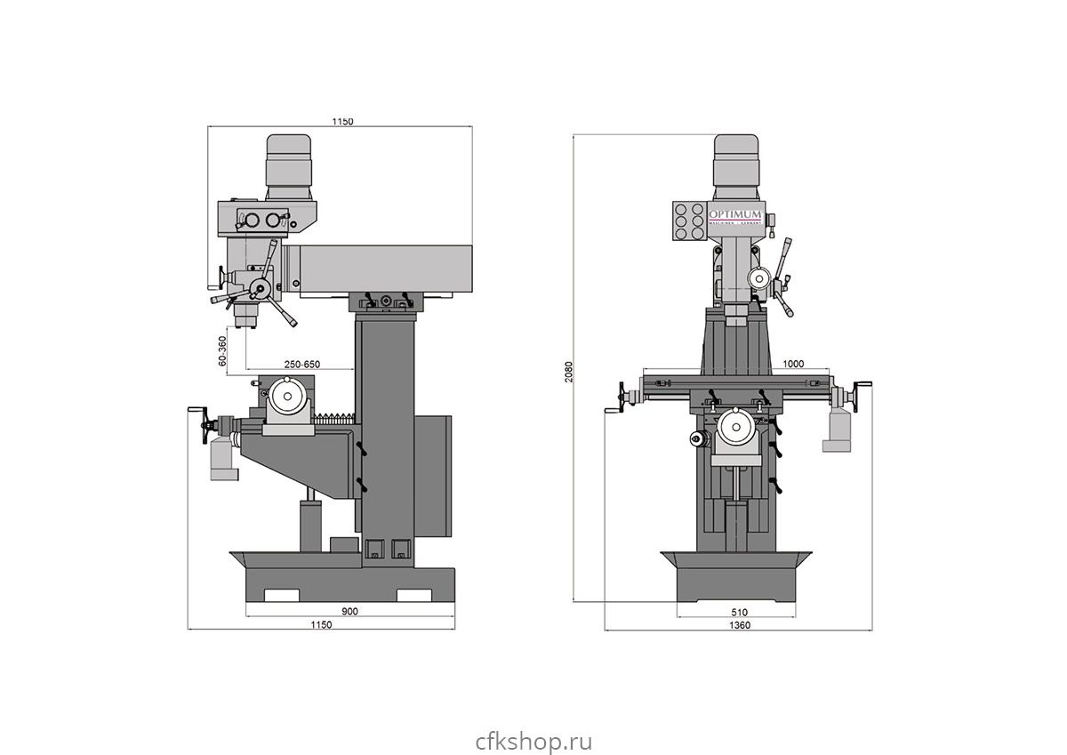 - Большой диапазон вылета оси шпинделя по оси Y от 250 до 650 мм;