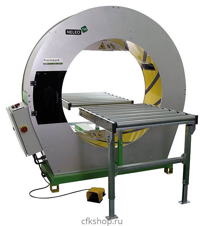 Упаковочная машина Plasticband Neleo 125 предназначена для упаковки, группировки и защиты длинномерных изделий, таких как молдинги, профили, алюминиевые трубы и жалюзи в стрейч-пленку на предприятиях различных направлений. Модель оснащена ножной педалью для активации цикла упаковки.