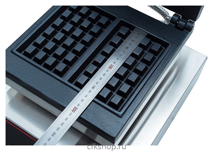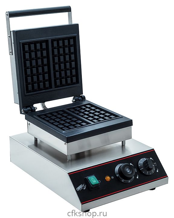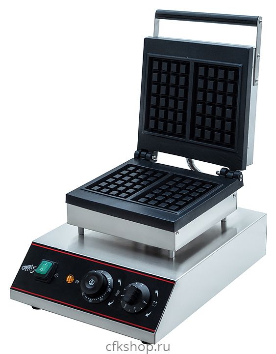 Вафельница Crazy Pan CP-WFM02 используется на предприятиях общественного питания и торговли для выпекания прямоугольных бельгийских вафель. Модель оснащена терморегулятором, 2 ТЭНами и звуковым таймером на 5 минут. Корпус выполнен из нержавеющей стали, рабочая поверхность - из чугуна с антипригарным покрытием.