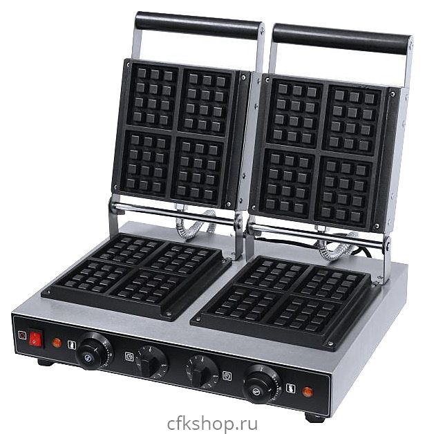 Вафельница Enigma IWB-2S используется на предприятиях общественного питания и торговли для выпекания квадратных бельгийских вафель. Модель оснащена таймером до 5 минут и 4 ножками. Рабочие поверхности выполнены из чугуна с тефлоновым покрытием.