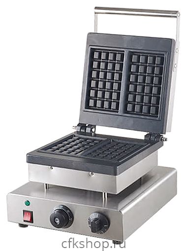 Вафельница Kocateq GH15WBNW используется на предприятиях общественного питания и торговли, в пекарнях и кондитерских для выпечки прямоугольных бельгийских вафель. Модель оснащена механической панелью управления, таймером до 15 минут со звуковым сигналом и термостатом для регулировки температуры. Рабочая поверхность выполнена из алюминия с антипригарным покрытием, корпус - из нержавеющей стали AISI 430, ножки - из пластика.