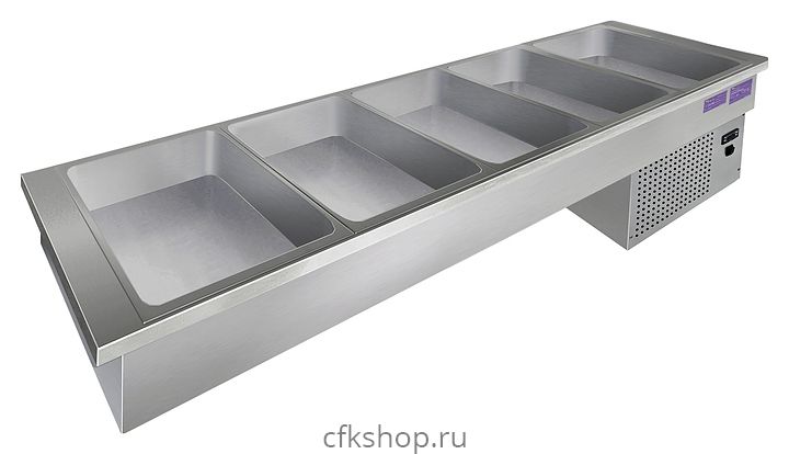Холодильная ванна Finist STATIC gastro ВХВ-5 предназначена для демонстрации и кратковременного хранения готовых холодных блюд и салатов на предприятиях общественного питания и торговли. Модель размещается как отдельно стоящий прилавок либо монтируется в существующую линию раздачи. Модель оснащена самостоятельной холодильной установкой, кабелем питания с евровилкой и кнопочной панелью управления с цифровым дисплеем. Цельнозаливной корпус выполнен из высококачественной нержавеющей стали.