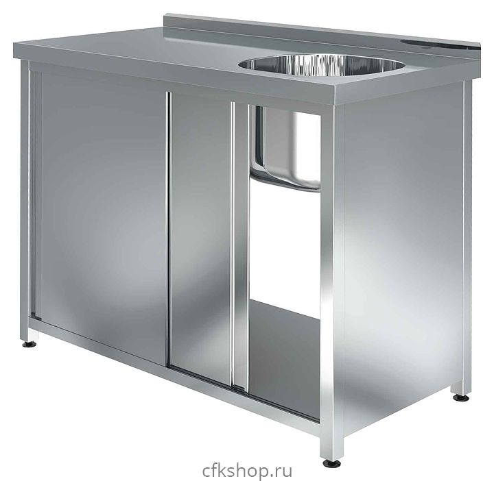 Моечная ванна Assum СПКБ-10/6-ВП4 серии Премиум предназначена для мытья кухонного инвентаря на предприятиях общественного питания. Модель оснащена 1 раковиной справа, рабочей поверхностью слева, бортом, дверями-купе, боковыми стенками, отверстием под смеситель и выпуском. Цельнотянутая раковина выполнены из высококачественной нержавеющей стали AISI 304, столешница – из нержавеющей стали AISI 430 с усилением из ламинированной древесно-стружечной плиты, боковые стенки, двери и полка – из нержавеющей стали AISI 430, сварной каркас – из профиля трубы квадратного сечения (опоры) и углового профиля из нержавеющей стали AISI 430, подпятники опор – из прочного пластика.