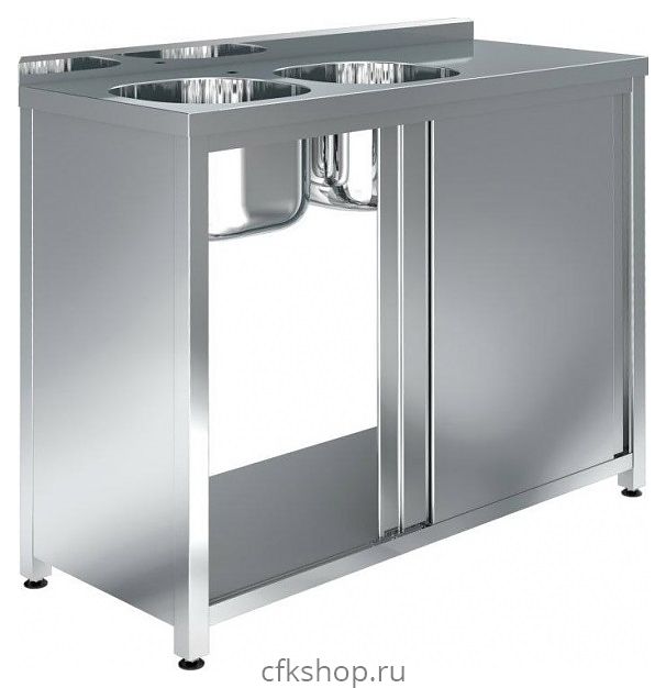 Моечная ванна Assum СПКБ-12/6-2ВЛ4 серии Премиум предназначена для мытья кухонного инвентаря на предприятиях общественного питания. Модель оснащена 2 раковинами слева, рабочей поверхностью справа, бортом, дверями-купе, боковыми стенками, отверстием под смеситель и выпуском. Цельнотянутые раковины выполнены из высококачественной нержавеющей стали AISI 304, столешница – из нержавеющей стали AISI 430 с усилением из ламинированной древесно-стружечной плиты, боковые стенки, двери и полка – из нержавеющей стали AISI 430, сварной каркас – из профиля трубы квадратного сечения (опоры) и углового профиля из нержавеющей стали AISI 430, подпятники опор – из прочного пластика.