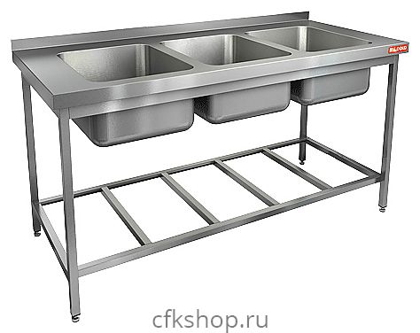 Моечная ванна HICOLD НСО3М-16/6БР ЭЦ предназначена для мойки продуктов питания, посуды и кухонных принадлежностей на предприятиях общественного питания и торговли. Каркас выполнен из оцинкованного уголка 40x40 мм толщиной 0,8 мм, столешница - из нержавеющей стали AISI 430 толщиной 1 мм с ребрами жесткости.