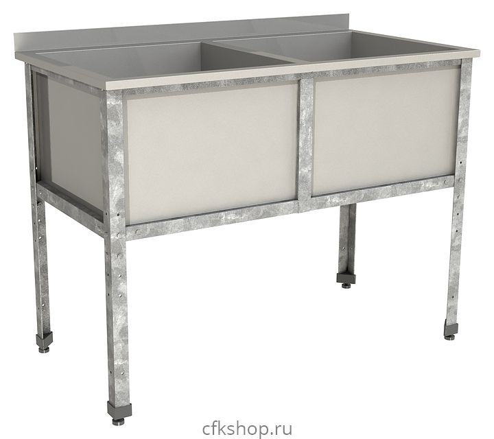 Моечная ванна Restoinox ВМС-2/4-Б-ЭК используется на предприятиях общественного питания и торговли для мытья посуды, кухонного инвентаря и продуктов. Модель оснащена площадкой под смеситель с бортом. Каркас выполнен из уголка 40х40 мм оцинкованной стали, емкость - из нержавеющей стали AISI 430.