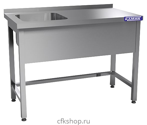 Моечная ванна КАМИК ВМ-1-43146 используется на предприятиях общественного питания и торговли для мойки посуды, овощей и фруктов. Сварной каркас и столешница выполнены из нержавеющей стали AISI 430, цельнотянутая емкость - из нержавеющей стали AISI 304.