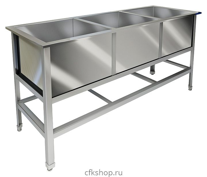 Моечная ванна Техно-ТТ ВМ-43/530 используется на предприятиях общественного питания и торговли для мытья и ополаскивания продуктов, посуды и различного инвентаря. Модель с закругленными краями оснащена механическим запорным клапаном и регулируемыми по высоте ножками, компенсирующими неровности пола. Сварной каркас выполнен из уголка 40х40х2 мм нержавеющей стали AISI 304, сварные мойки - из нержавеющей стали AISI 304 толщиной 0,8 мм, выпуски - из нержавеющей стали.
