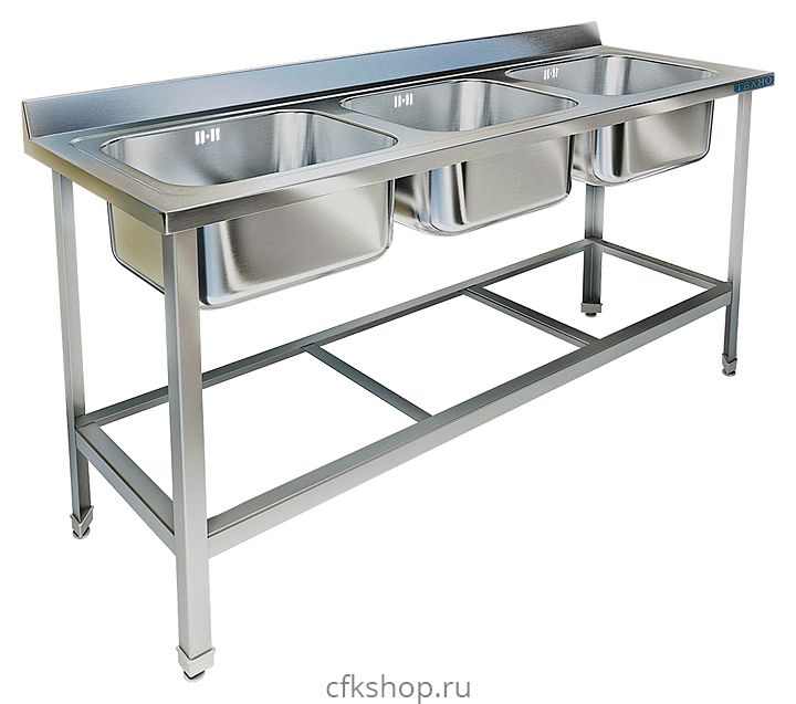 Моечная ванна Техно-ТТ ВМ-48/557 используется на предприятиях общественного питания и торговли для мытья и ополаскивания продуктов, посуды и различного инвентаря. Модель с закругленными краями и шумопоглощающей изоляцией снизу моек оснащена обнижениями, которые препятствуют попаданию воды за пределы столешницы, объемным пристенным бортом, механическим запорным клапаном и регулируемыми по высоте ножками, позволяющими компенсировать неровности пола. Сварной каркас выполнен из уголка 40х40х2 мм из нержавеющей стали AISI 304, цельнотянутые мойки - из нержавеющей стали AISI 304 толщиной 1 мм, выпуск - из нержавеющей стали. Поставляется в собранном виде.