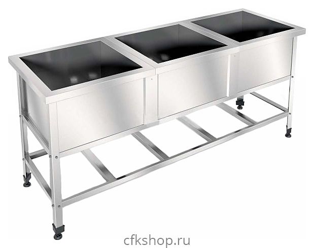 Ванна оснащена сварными мойками из нержавеющей стали. Ножки в виде уголка, выполненные из высококачественной оцинкованной стали, гарантируют устойчивость всей конструкции.