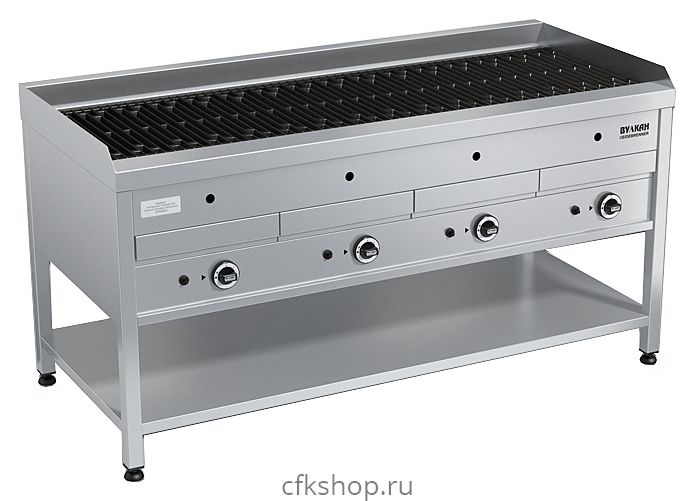 Вапо-гриль Вулкан BPD 04V Арпат предназначен для жарки различных продуктов на предприятиях общественного питания и торговли. В процессе приготовления блюда получают такой же вкус, аромат и внешний вид, словно их готовили на открытом огне. Модель оснащена газ-контролем, пьезоподжигом, запальной горелкой, защитным бортом от разбрызгивания и поддоном для воды, благодаря которой продукты приобретают дополнительную сочность и мягкость без образования дыма и чада. Корпус выполнен из нержавеющей стали, рабочая поверхность из чугуна, устойчивой к высоким температурам и интенсивной нагрузке.