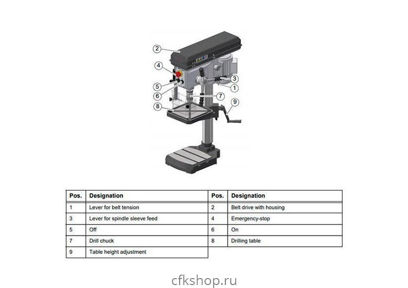 - При снятом сверлильном столе, поверхность основания станка может быть использована для установки особо высоких заготовок;